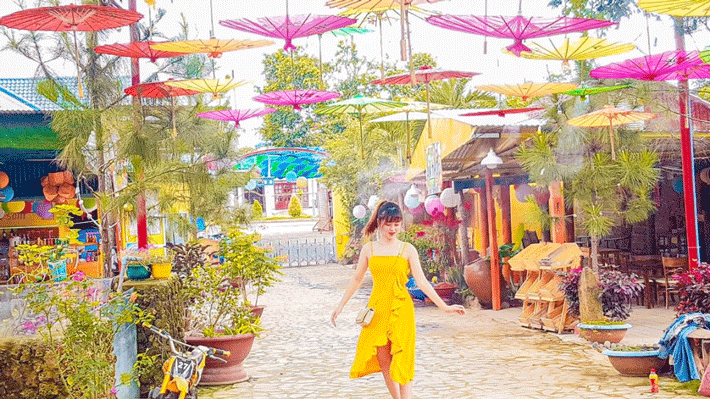 Ngoc Dung Mall is an interesting check-in attraction with infinity stairs, sky gate, swimming pool, love path, romantic flower garden, giant pumpkin garden, clean vegetable garden, King Kong statue of Hollywood, radio. Sea lion water fountain, Hoi An style cafe.